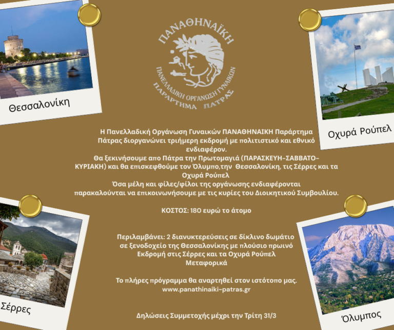 • Πλήθος πολιτιστκών εκδρομών σε διάφορες περιοχές της χώρας μας