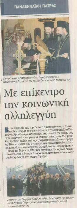Η Κοινωνική προσφορά της Πανελλαδικής Οργάνωσης Γυναικών ΠΑΝΑΘΗΝΑΪΚΗ Παράρτημα Πάτρας και η τιμητική διάκριση από τον Μητροπολίτη Πατρών κ.Χρυσόστομο